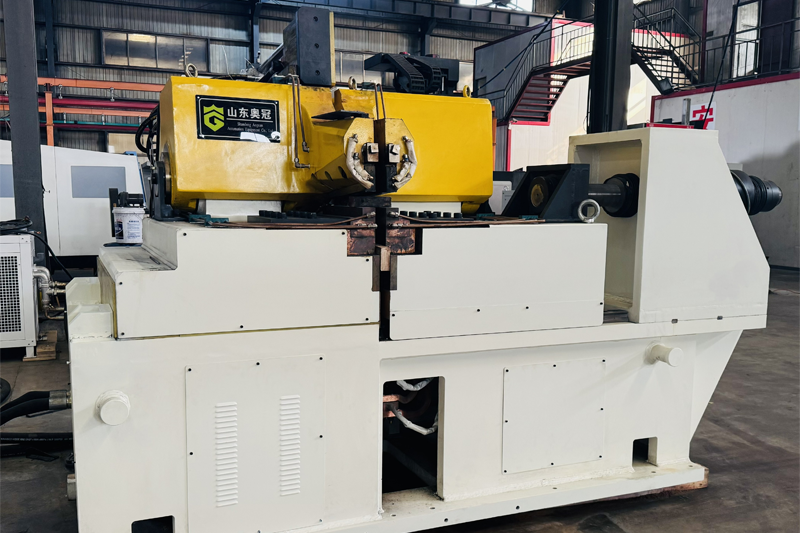 The butt welding machine used in steel wheel production line is designed for joining and welding the ends of the coiled hoops together to form wheel rims. Both clamping and welding functions are operated hydraulically, with welding parameters easily adjustable via a touch screen.